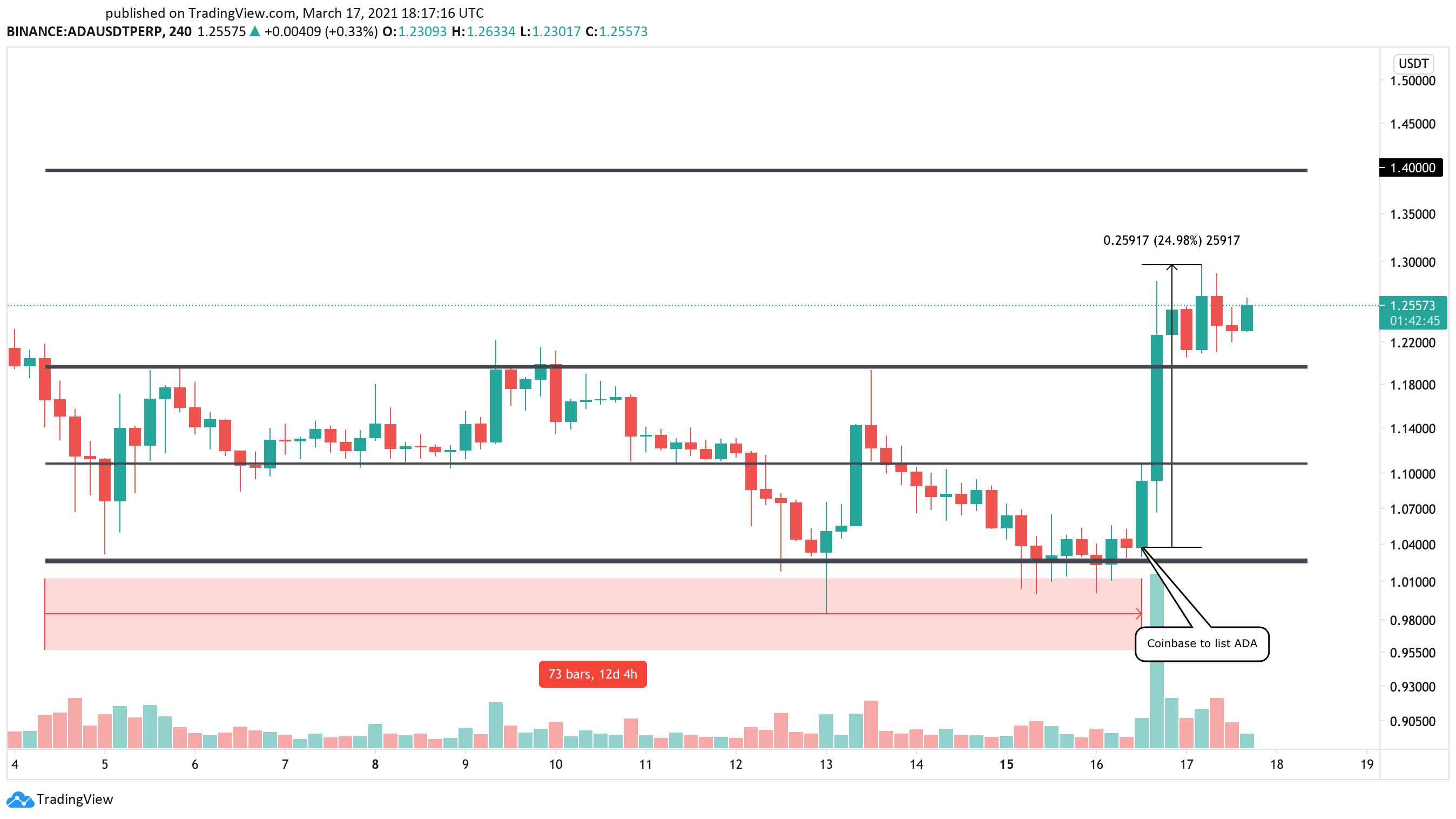 Cardano (ada) price up 17.4 percent · coinbase could offer support for ada · transaction averages almost double in the last two weeks.